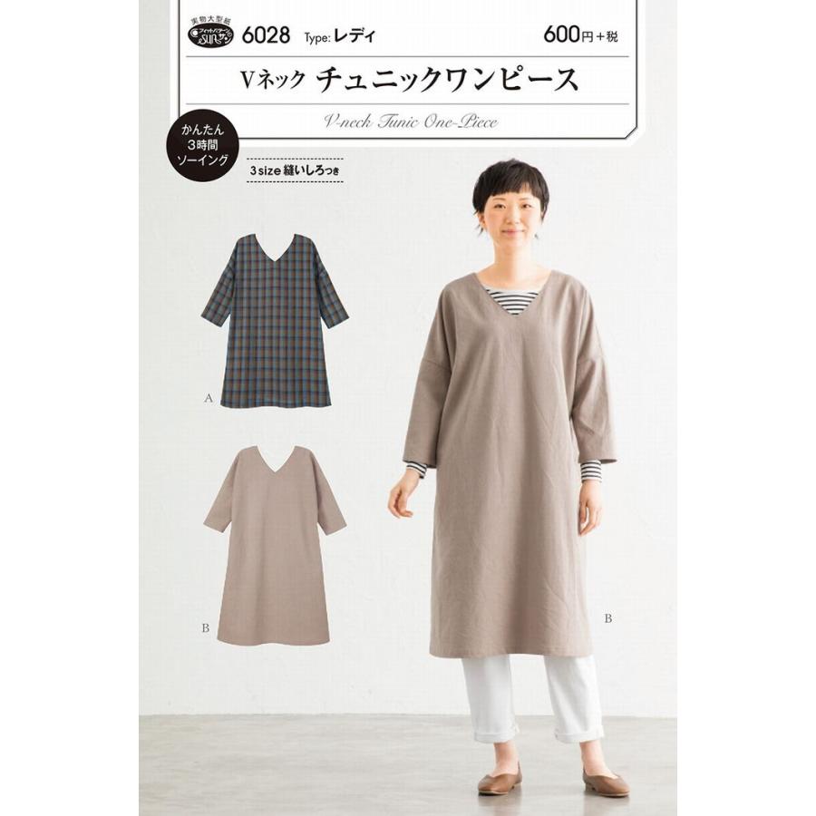 ソーイングパターン 型紙 Vネックチュニックワンピース 6028 H Ki オカダヤ Okadaya 布 生地 毛糸 手芸用品の専門店